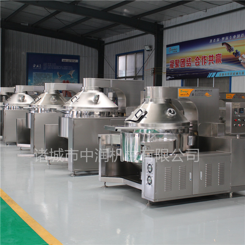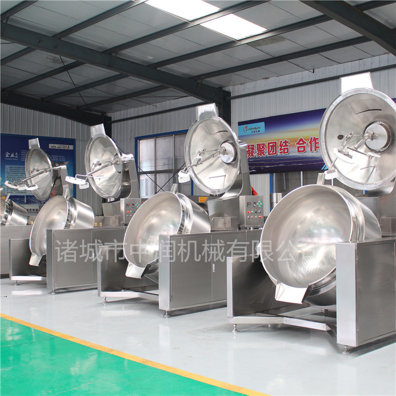 高粘度攪拌炒鍋是針對黏稠度比較大的物料研發(fā)的新型炒料設(shè)備,特別像月餅餡料的炒制加工,更能體現(xiàn)出高粘度攪拌炒鍋的價值。高粘度攪拌炒鍋使用的是半球形的行星鍋膽,圓弧度誤差小,能與攪拌齒緊密的貼合,起到刮底刮邊的效果,在炒制物料的時候不會出現(xiàn)粘鍋糊鍋的現(xiàn)象,攪拌齒采用的是聚四氟乙烯材質(zhì)的刮板,耐高溫耐磨安全衛(wèi)生干凈,放心使用。高粘度攪拌炒鍋能替代人工翻炒物料,實(shí)現(xiàn)自動化操作,節(jié)約成本減少勞動力,還提高了產(chǎn)量,是性能優(yōu)良的好幫手。