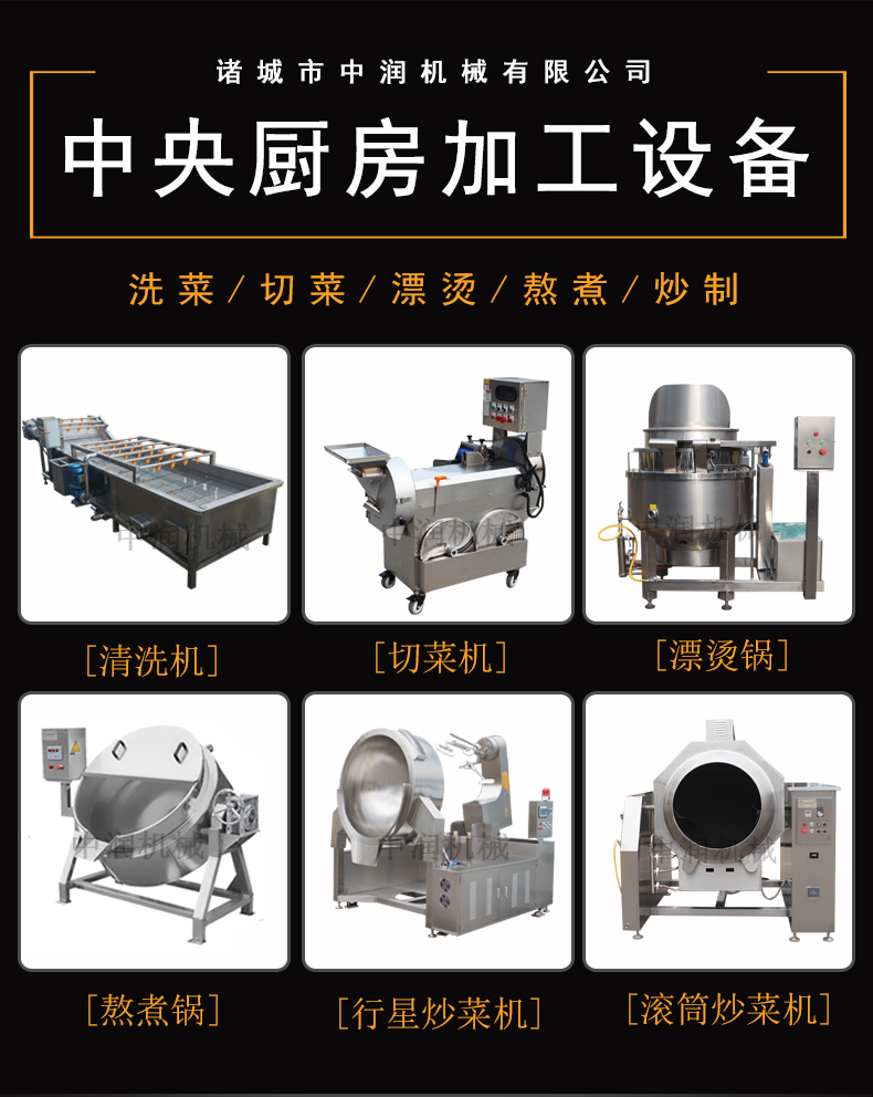 隨著快節(jié)奏生活時代的進入,預(yù)制菜,方便菜,營養(yǎng)餐也越來越受青睞,集中生產(chǎn)處理、集中配送的加工生產(chǎn)方式越來越普遍,中央廚房設(shè)備可以讓成本降低,生產(chǎn)效率提高,食品衛(wèi)生要求等提高。我們的中央廚房設(shè)備包含以下幾大類。