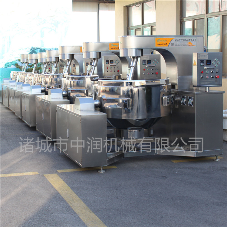 調(diào)味醬料炒鍋全自動化替代人工翻炒,連續(xù)不停地完成攪拌臂升降、翻鍋、倒料、歸位、攪拌、加減溫度等各個(gè)動作,不需人工操作,節(jié)省人力、物力,提高了生產(chǎn)效率。