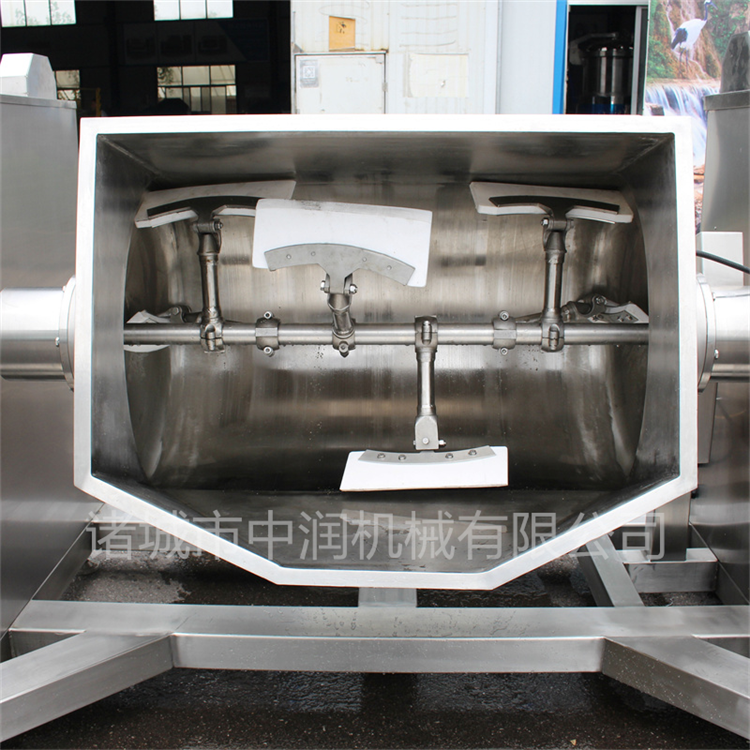 橫軸攪拌炒鍋的U形鍋體頂部抽真空,夾套采用蒸汽加熱,無段變速與蝸輪、減速機的組合傳動,加大了橫軸攪拌的辦矩,采用聚四氟乙烯材質刮板的攪拌器,在物料的翻滾攪拌過程中,攪拌器與鍋體的充分接觸,確保了無攪拌死角。