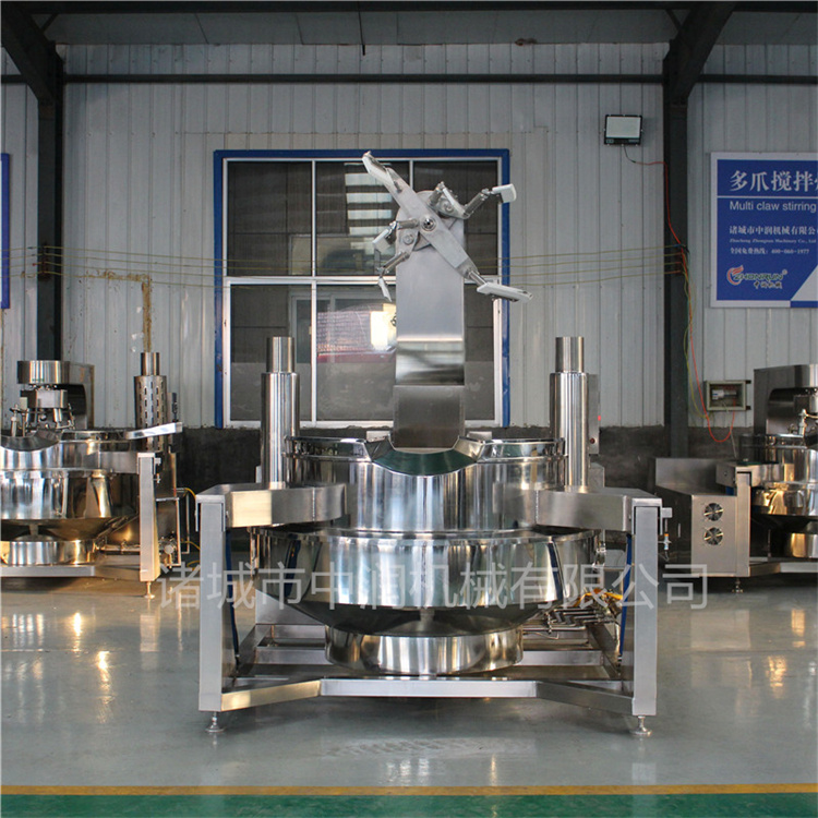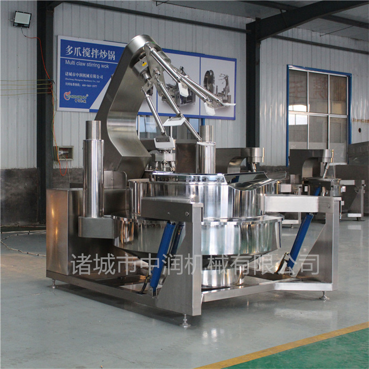 大型多爪攪拌炒鍋在原有的行星炒鍋基礎(chǔ)上研發(fā)出的升級款,該設(shè)備帶有多個攪拌齒,雙行星攪拌形式,使物料攪拌的更加均勻,可以說比人工翻炒效果更好,設(shè)備容量大,產(chǎn)量高,大大地提高了工作效率和產(chǎn)量,加熱方式采用電磁加熱、燃氣加熱、蒸汽加熱、電加熱導熱油四種加熱形式,容積從400L-1000L可以根據(jù)要求定制,是各種調(diào)味醬料,火鍋底料、糕點餡料、果醬、阿膠熬制、大型食堂炒菜、藥材炒制等加工廠的理想設(shè)備。