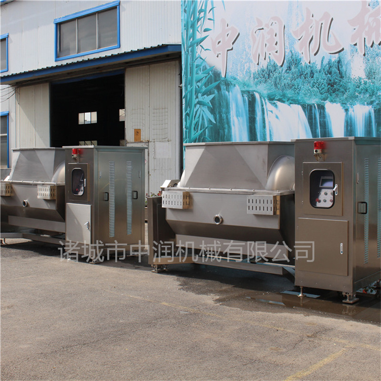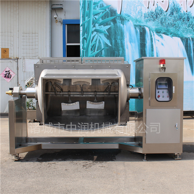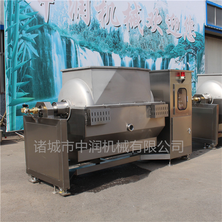 本機(jī)的U型鍋體,鍋體及表面接觸部分均采用304不銹鋼制造,易于清洗,符合食品衛(wèi)生要求。全封閉槽形鍋體,夾套采用電磁、電加熱導(dǎo)熱油、燃?xì)?、蒸汽加熱等加熱方式,受熱面積大,熱效率高,適合不同物料對溫度和升溫速度的要求。無段變速與蝸輪、減速機(jī)的組合傳動,增大了橫軸攪拌的力矩。采用聚四氟乙烯材質(zhì)刮板的攪拌器,在物料的翻滾攪拌過程中,攪拌器與鍋體的充分接觸,確保了無攪拌死角。鍋體的開蓋、卸料、復(fù)位采用氣壓、機(jī)械傳動控制,操作為方便。