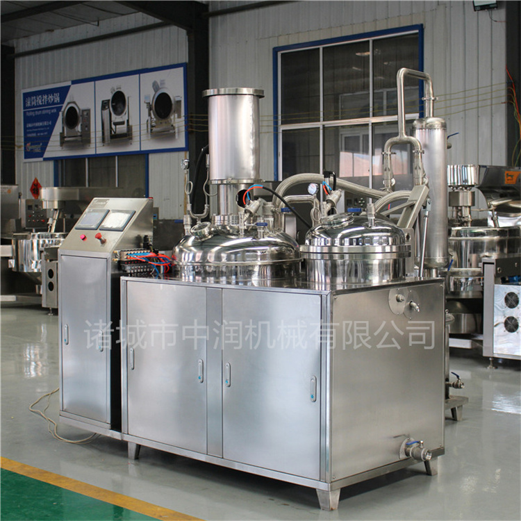 浸糖鍋的鍋體是由內(nèi)外由半球形鍋體+直邊+支架組成的雙層結(jié)構(gòu)形式。以上產(chǎn)品可根據(jù)用戶需要成套制作或單機(jī)制作。真空浸糖鍋具有受熱面積大、加熱均勻、液料沸騰時(shí)間短、加熱溫度容易控制等特點(diǎn)。