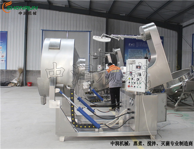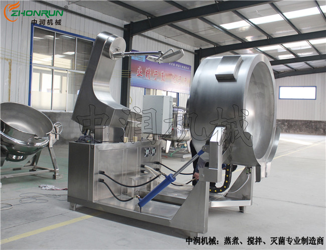 1、可傾式下攪拌炒鍋,解決了上攪拌的出料難、不易清洗的問題