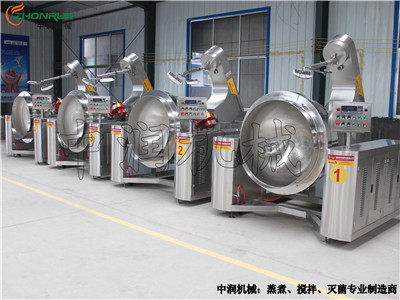 傳統(tǒng)的制作方法是用大鍋煮或者桶放在燃?xì)庠钌线吋訜徇呌媚竟鲾嚢?,很是辛苦,還要小心防止?fàn)C傷,如果用全自動(dòng)行星攪拌炒鍋就不用這么麻煩了,此設(shè)備操作簡(jiǎn)單,易于清洗,采用特有的行星自動(dòng)攪拌方式,使鍋內(nèi)物料不會(huì)有粘鍋、糊鍋的現(xiàn)象,接觸食品部位均為304不銹鋼材質(zhì),符合我國食品衛(wèi)生要求。加熱方式不再是單一的燃?xì)饧訜?,有電磁加熱、蒸汽加熱、電加熱?dǎo)熱油、燃?xì)饧訜岬燃訜岱绞娇晒┻x擇,且受熱面積大,攪拌均勻 ,加熱攪拌可同時(shí)進(jìn)行,自動(dòng)液壓傾斜出料,大大節(jié)省了人工,提高了攪拌效率。