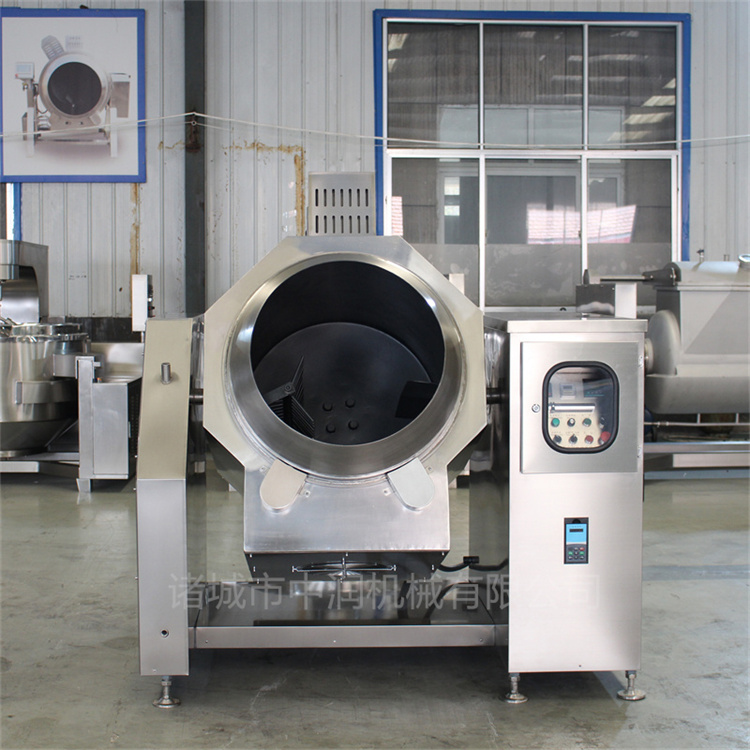 - 設備采用臥式滾筒結(jié)構(gòu),通過電磁加熱或燃氣加熱(明火炒制)方式,使鍋體360度旋轉(zhuǎn)翻炒。