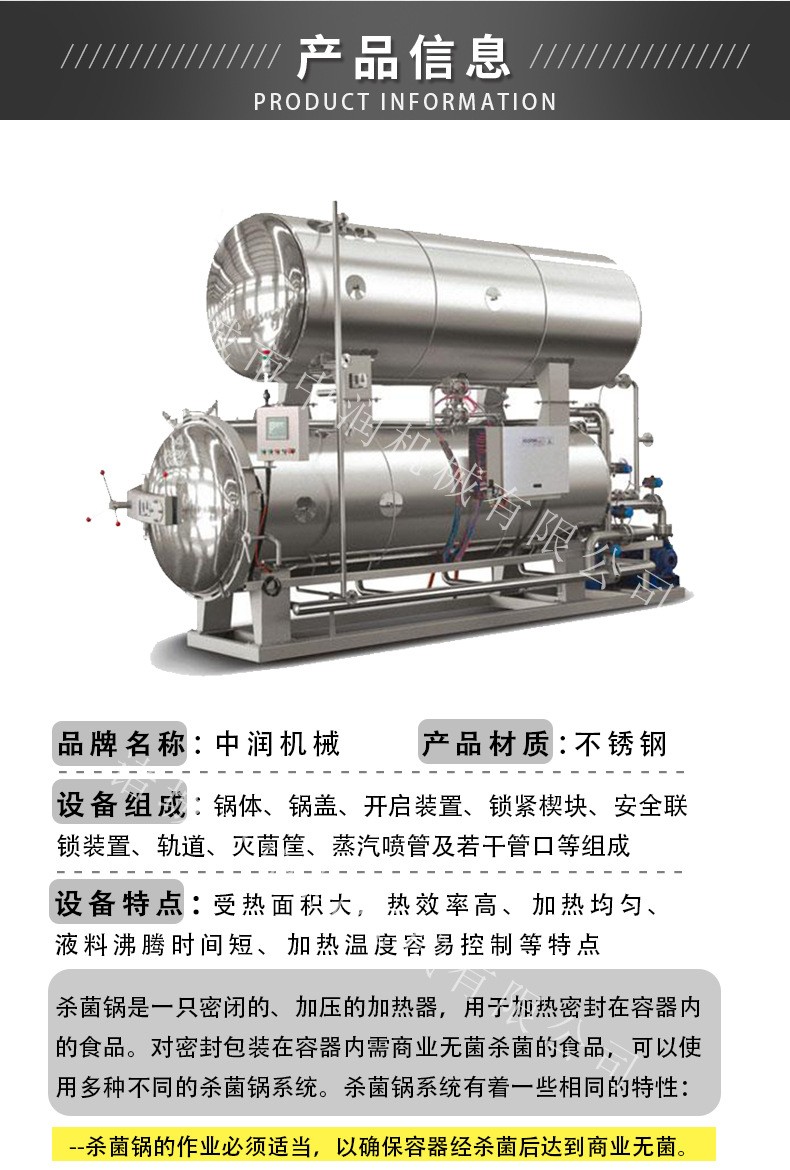 間接加熱間接冷卻,冷卻用水與工藝用水不接觸,避免了食品的二次污染,無需使用水處理化學(xué)制劑。高溫短時(shí)間殺菌。良好的壓力控制,整個(gè)生產(chǎn)過程壓力在不斷調(diào)節(jié),以適應(yīng)產(chǎn)品包裝內(nèi)部壓力的變化,特別適合含氣包裝的產(chǎn)品。
